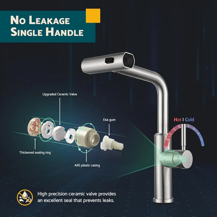 کاربرد آسان: شیرهای چهارحالته با کلید تعویض حالت، شستشوی ظروف و صورت را به کاری لذتبخش تبدیل میکنند.