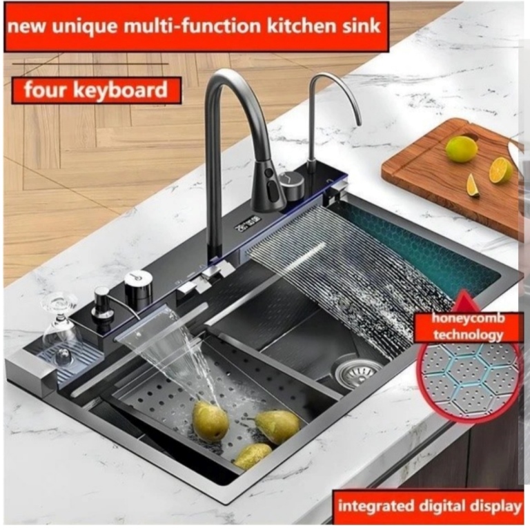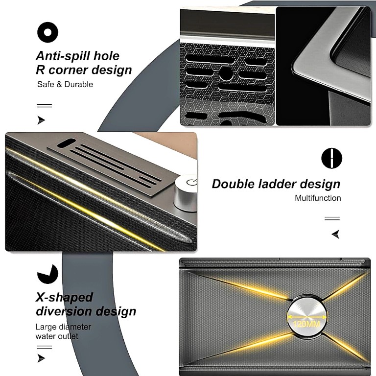 سینک ظرفشویی پیانویی 5 کلید HuaDiao – 100 سانت LuxurySink SUS304