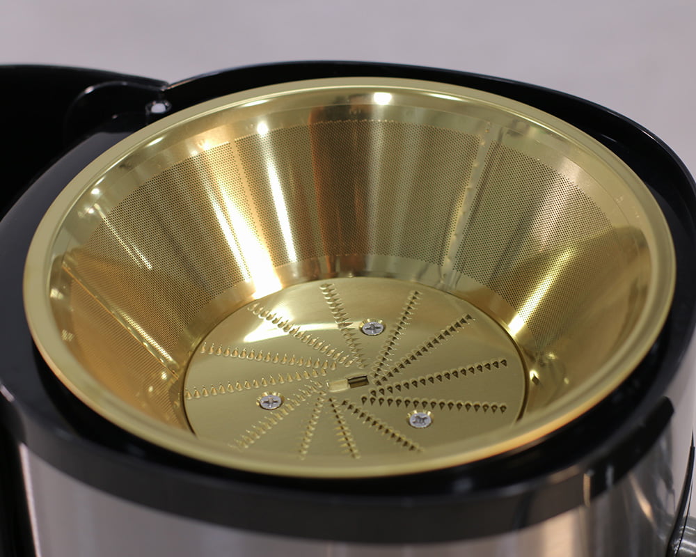 بله، این یک دستگاه سانتریفیوژ با کارایی بالا است که تفاله خشک را به مخزن مخصوص و عصاره خالص را به پارچ جداگانه هدایت میکند.