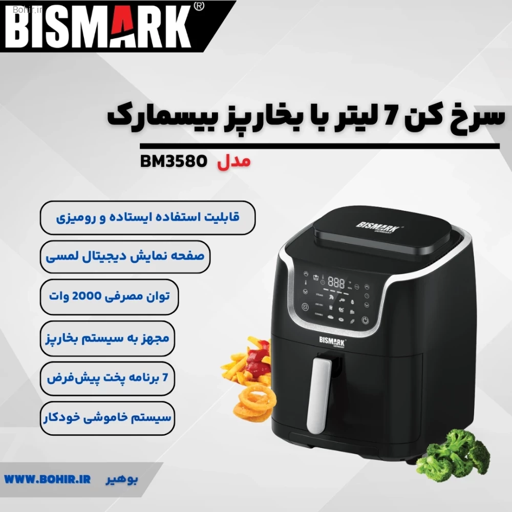 نظر کاربران الهام – تهران: بخارپزش عالیه، مرغ رو نرم و آبدار کرد. راضیه – شیراز: هم سرخکنه هم بخارپز، خیلی کاربردیه. کامران – اصفهان: کیفیت ساخت بالا و صدای کم. تینا – تبریز: سبزیجات بخارپز باهاش فوقالعاده میشه. سپیده – مشهد: پخت ترکیبی خیلی عالی بود. مهسا – قم: برنامهها دقیق و کافی هستند. رضا – کرج: سبدش بزرگه و نچسب واقعی. فرشته – یزد: پنل لمسی بسیار شیکه. پدرام – رشت: مصرف روغن صفر! فاطمه – اراک: بخارش باعث میشه غذا خشک نشه. مهیار – کرمان: خیلی کمصداست. هما – بابل: پخت یکنواخت و سریع. پریا – زاهدان: مخزن بخار جداگانه خیلی خوبه. شیما – اهواز: برای رژیمی عالیه. امیر – سمنان: قیمتش نسبت به امکاناتش عالیه. فرید – قزوین: سیبزمینیها خیلی ترد شد. بیتا – سنندج: ظاهر شیک و جذابی داره. نرگس – همدان: پخت ماهی باهاش فوقالعاده شد. شهاب – بندرعباس: خیلی سریع گرم میشه. حدیث – گرگان: بهترین خرید من از بیسمارک بود.