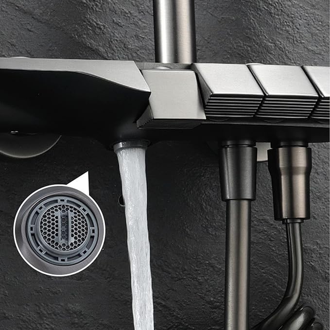دوش حمام دیجیتال پیانویی برند Hyshin مدل HS‑2222 با نمایشگر دما و نور LED رنگ دودی