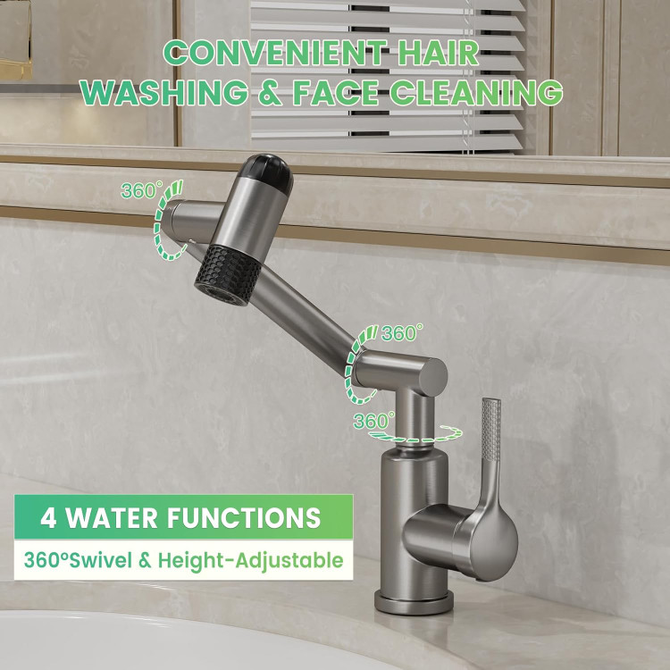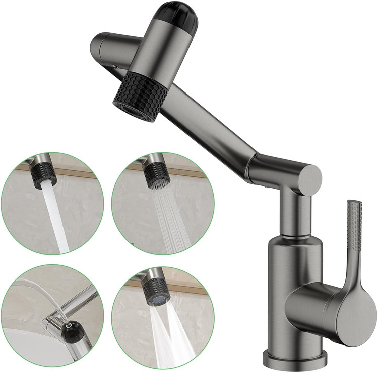 شیر روشویی 1080 درجه برند Huadiao | چرخش کامل + 6 حالت پاشش رنگ دودی